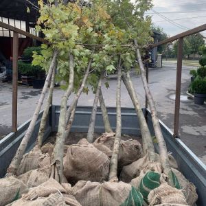 Platan – Platanus Acerifolia je listopadno drvo koje može dostići visinu do 35 metara. Kora je sivkasto-braon boje, tanka i ljušti se. Dobro podnosi gradske gasove i prašinu, te se može često videti po parkovima i drvoredima. Visina sadnice do 3 metra.